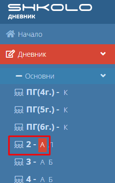 1. Навигирайте до "Дневник" и изберете паралелка.