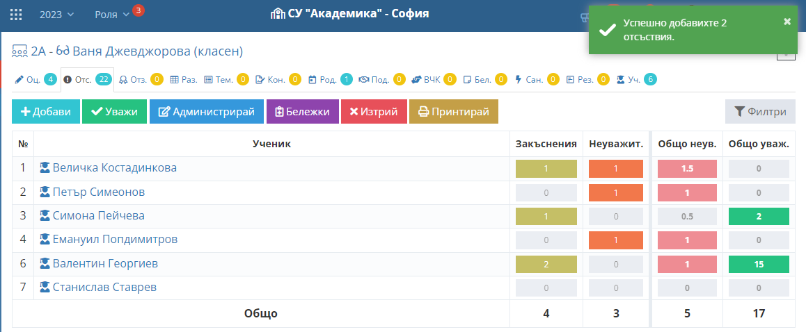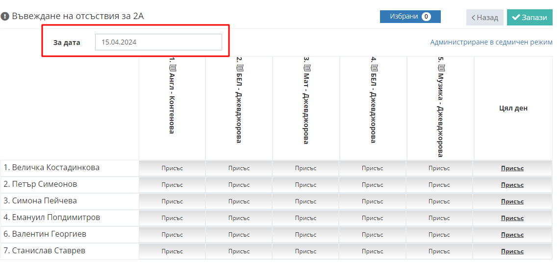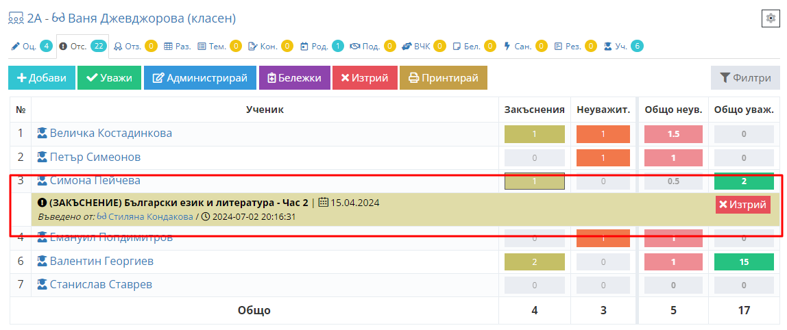 4. Въведете отсъствия и закъснения