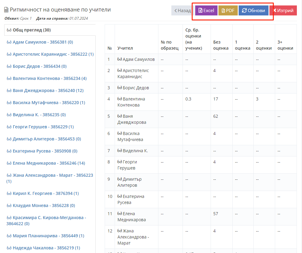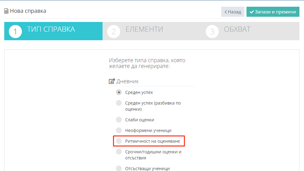 3. Изберете справка "Ритмичност на оценяване".