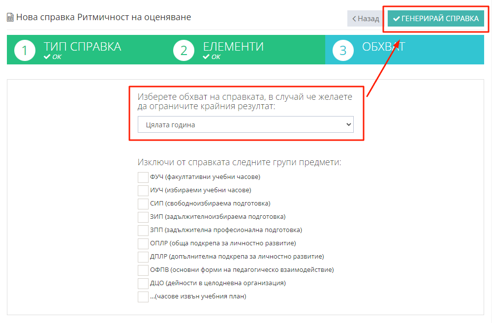 5. Изберете обхват, след което кликнете "Генерирай справка".