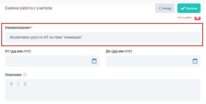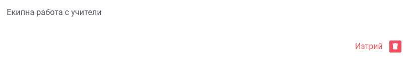 5. В раздел "Екипна работа с учители" се въвежда инфомация свързана с допълнителни дейности, които сте извършвали съвместно с други преподаватели.