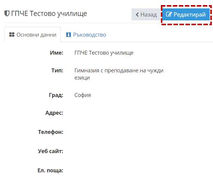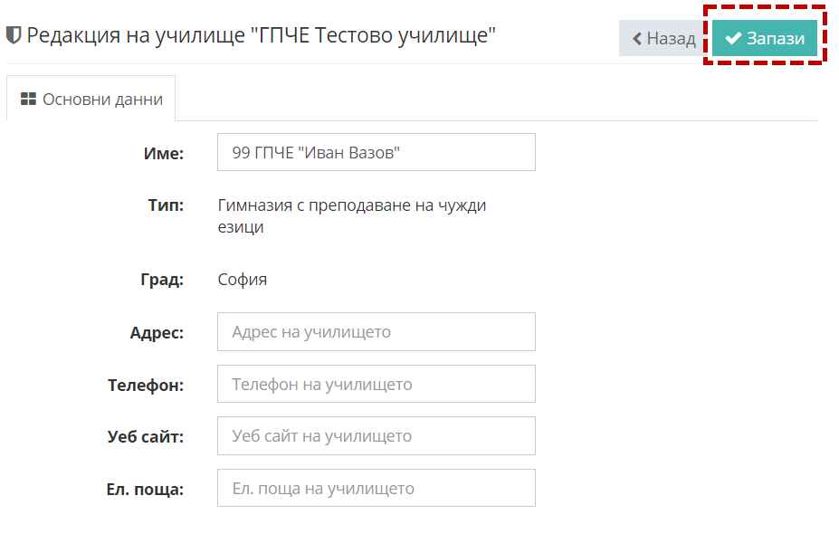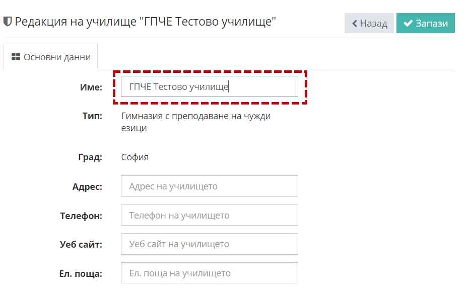 3. Въведете актуално име на училището.