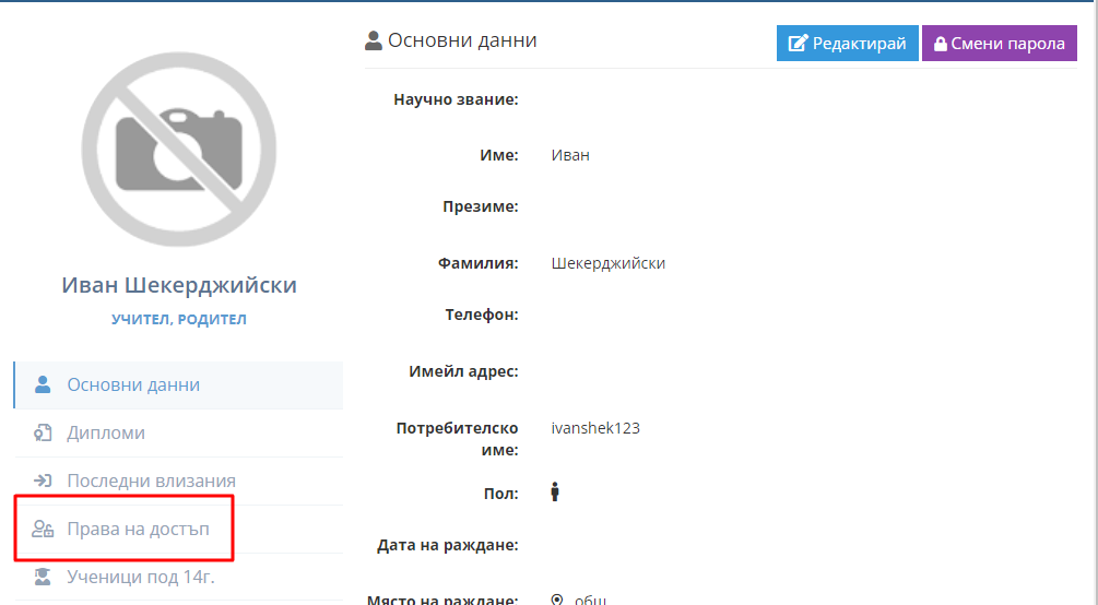Не мога да добавя 2 ро дете. Липсва секция права за достъп.