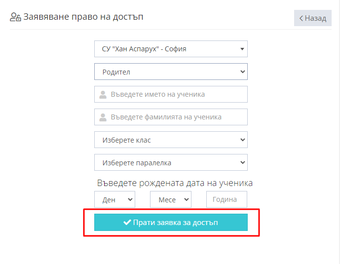 Внимание: Класният ръководител трябва да одобри заявката ви, за да получите достъп!