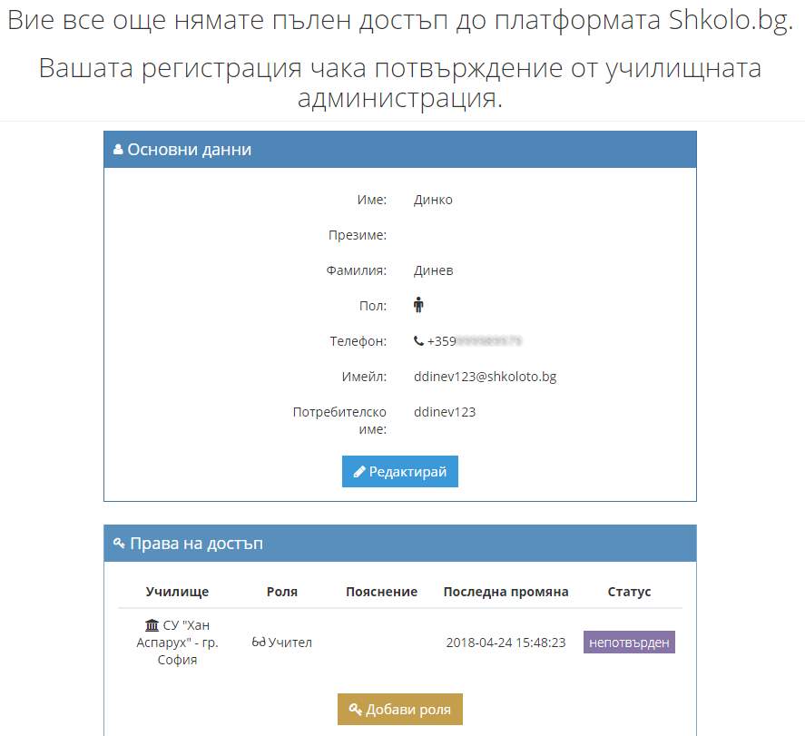 8. Изчаквате училищният администратор да одобри заявката Ви.