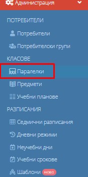 1. Навигирайте до модул "Администрация" и изберете "Паралелки".