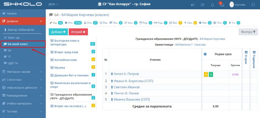 1. Навигирайте до модул "Дневник и изберете Вашия клас.