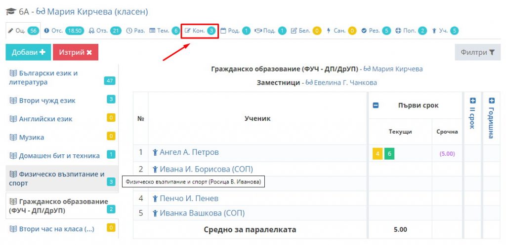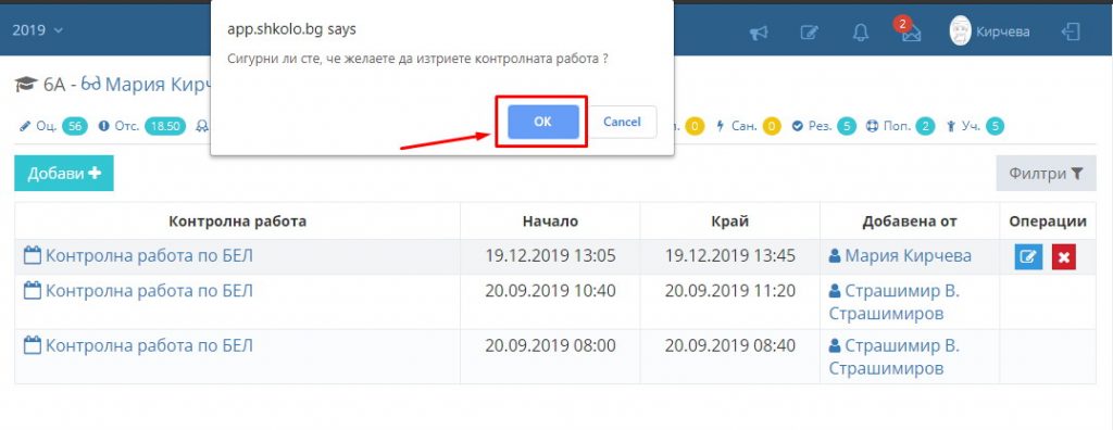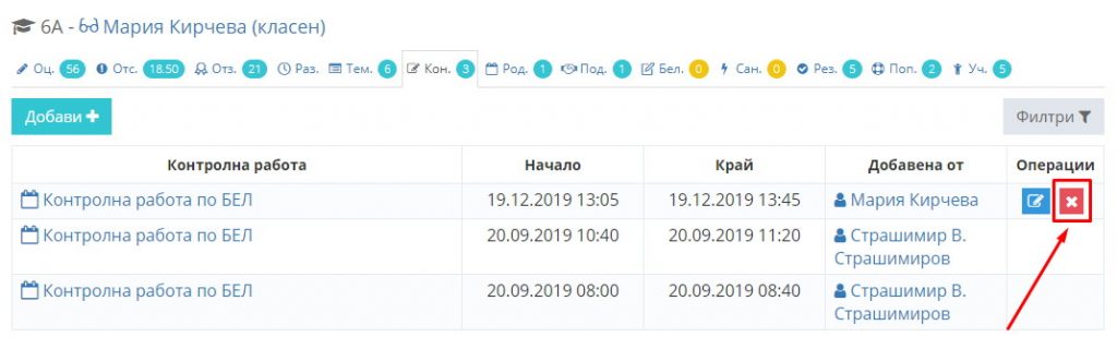 3. Кликнете бутон "Изтрий", който се намира срещу контролната или класна работа, която желаете да изтриете.