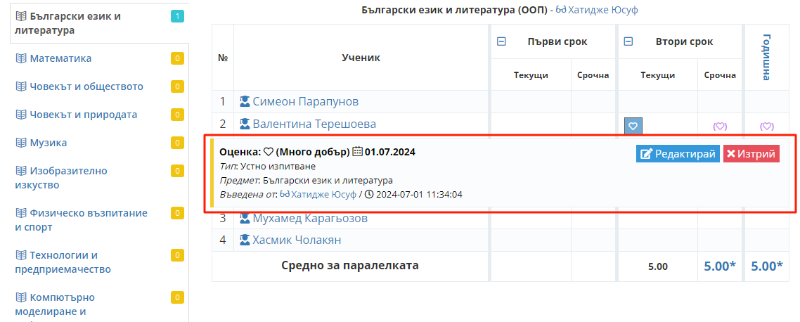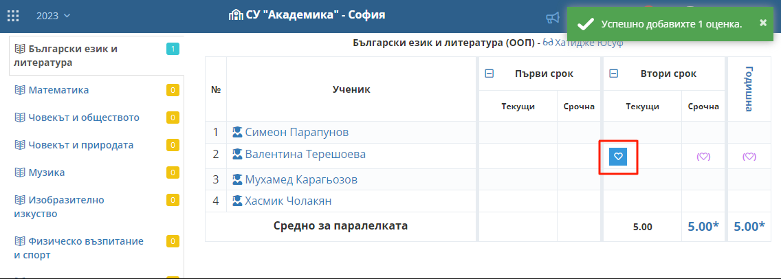 6.1. Оценката е успешно въведена.