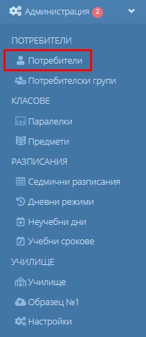 1. Навигирайте до модул "Администрация" и изберете "Потребители".