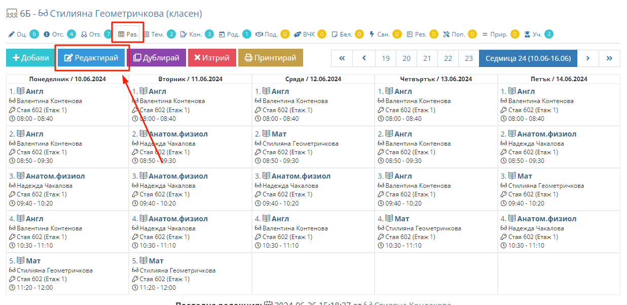 Внимание: За да ползвате коректно този модул от платформата, е нужно да има въведено разписание както за четните, така и за нечетните седмици! Повече подробности за това как да въведете седмично разписание - тук