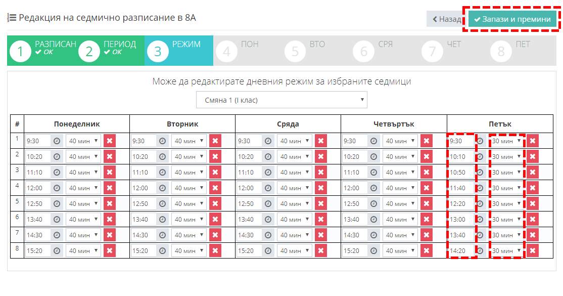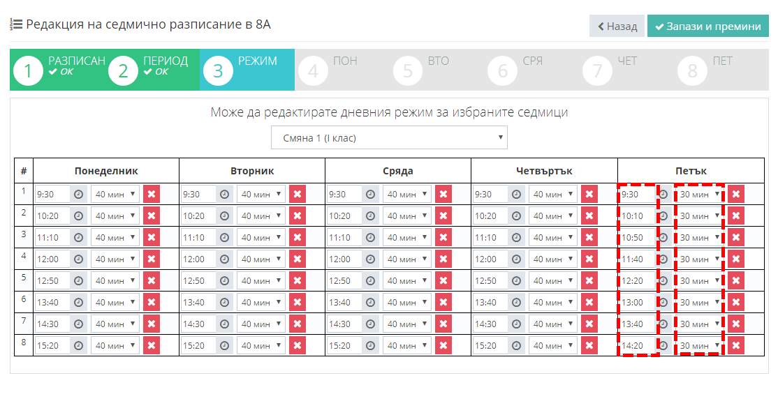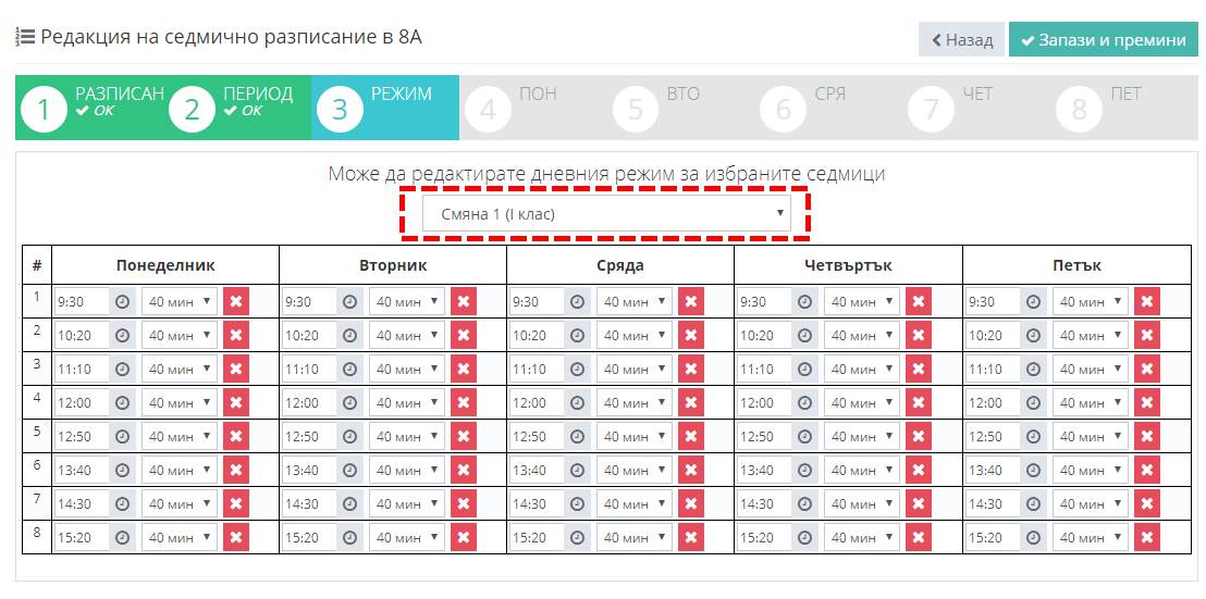 1. Навигирайте до разписанието на Вашия клас. Изберете дневния режим на Вашия клас.
