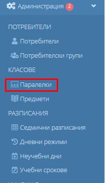 1. Навигирайте до модул "Администрация" и изберете "Паралелки".