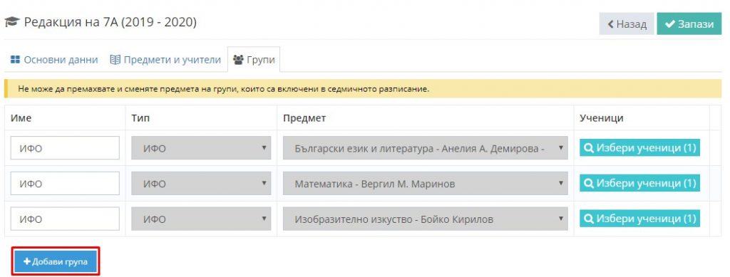 8. Добавете група по съответния предмет