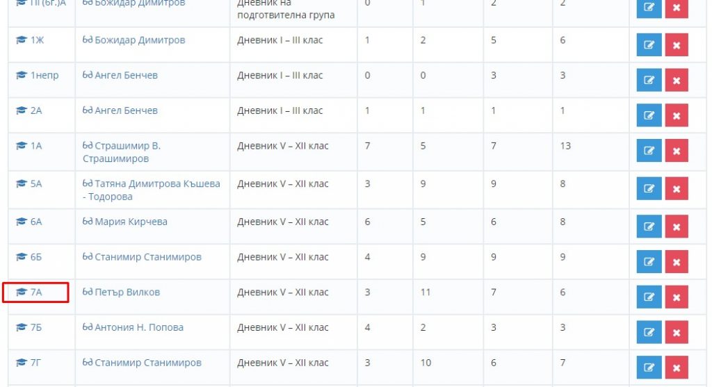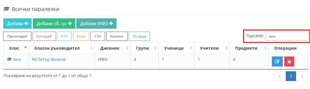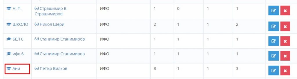 10. Навигирайте до модул "Администрация" и изберете "Паралелки". Този път влезте в паралелката ИФО.