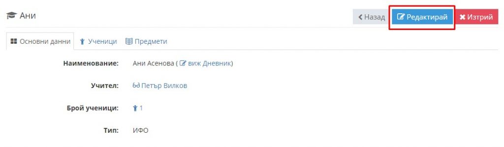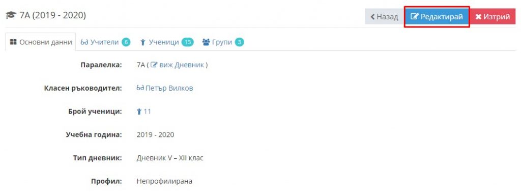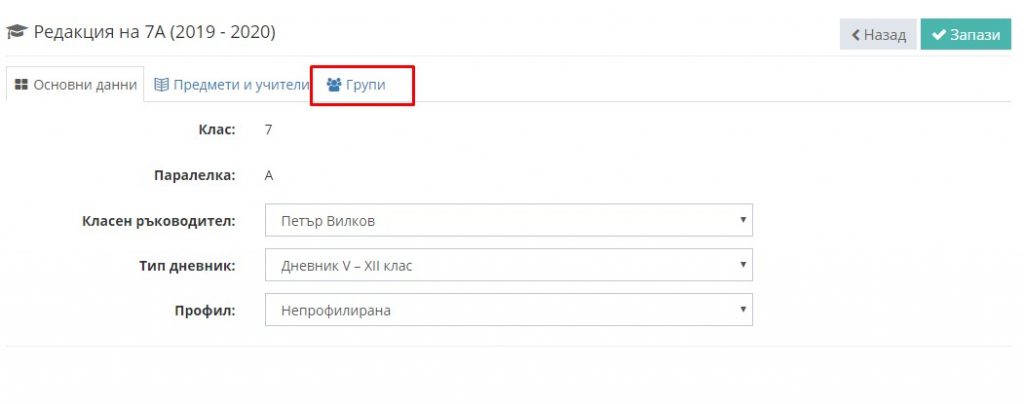 7. Отново влезте в редакция на паралелката, но този път изберете таб "Групи".