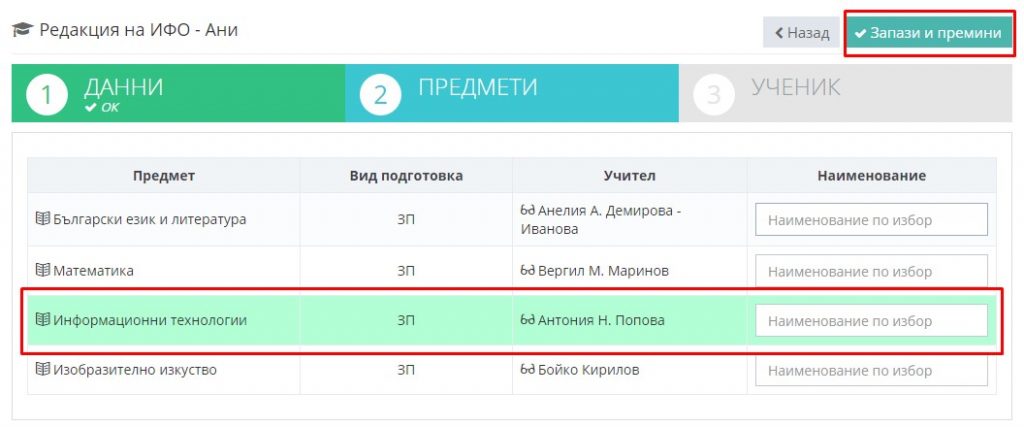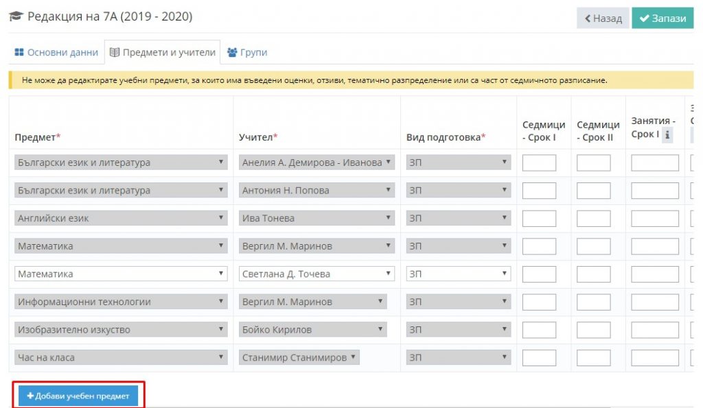 5. Добавете учебния предмет.