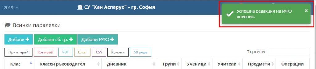 Възможно е даденият предмет и ИФО група вече да са били добавени, но да не се визуализират в дневника на ученика.