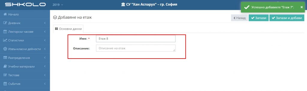 7. Ако желаете да добавяте още етажи кликнете бутон “Запази и добави”.