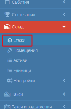 1.Навигирайте до модул “Склад” и изберете “Етажи”.