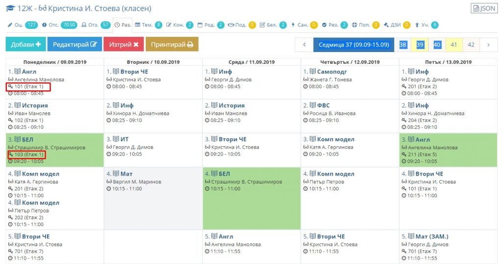 3. Може да задавате стая за конкретен учебен час.