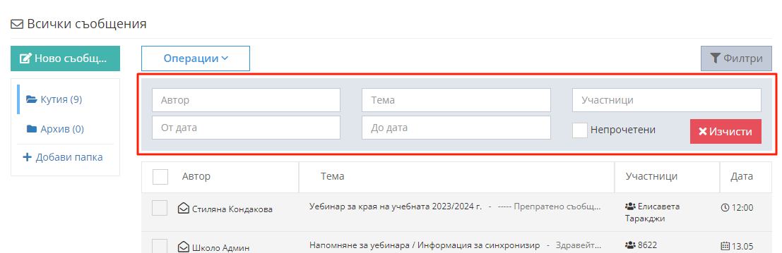 3. Въвеждаме името на автора, текст в полето за тема или комбинация от двете. Също така може да изпозлвате и другите възможност за филтриране.