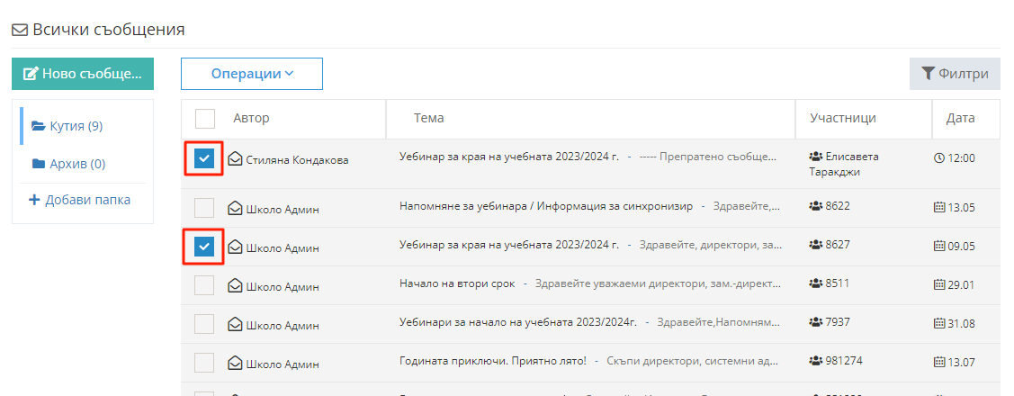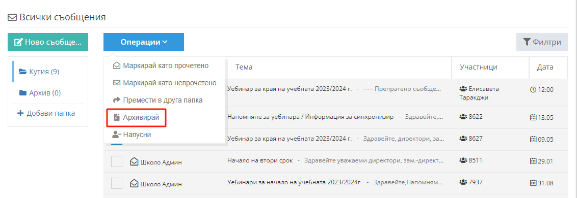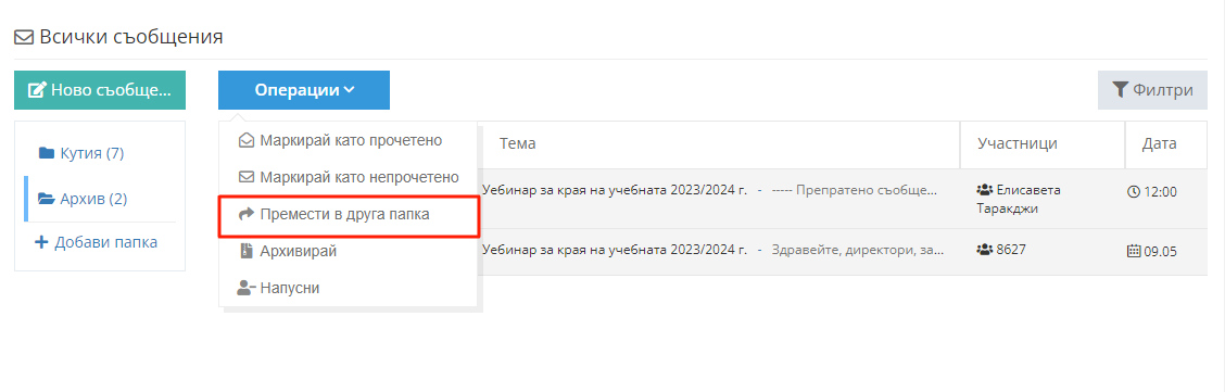 5. Аналогично, имаме опция да ги върнем в кутията. Маркирайте ги и от операции изберете "Премести в друга папка".