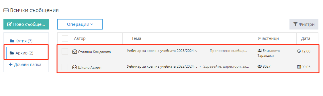 2. Архивираните и изпратени от мен съобщения остават ли достъпни за четене от другите?