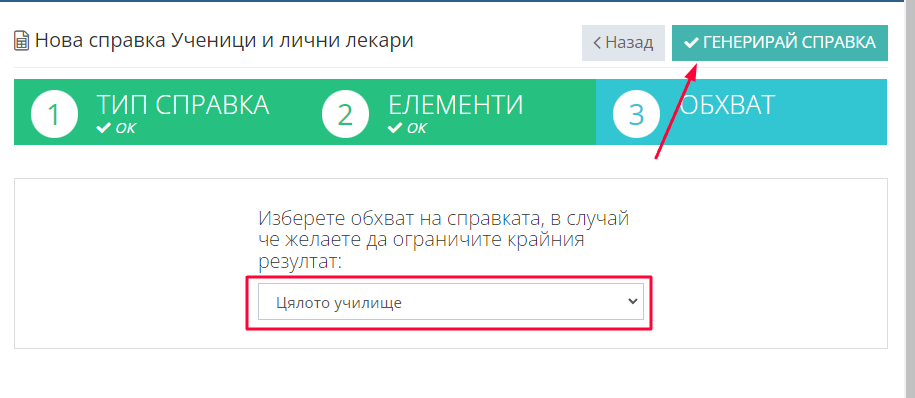 3. Задайте обхват на справката, след което кликнете бутон "Генерирай справка".