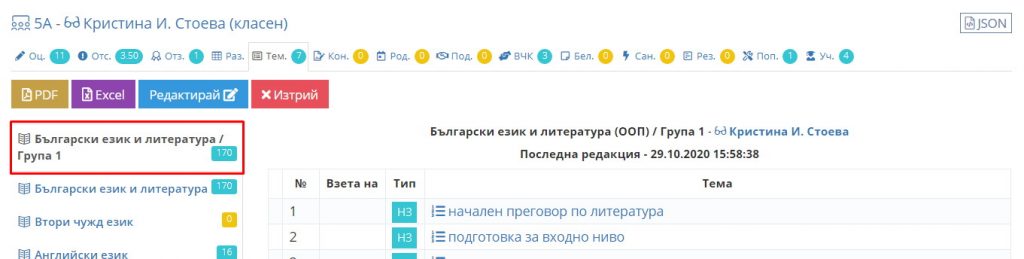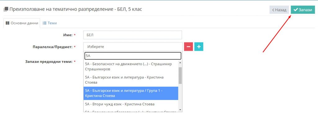 От падащото меню, изберете групата по предмета. След това кликнете "Запази"