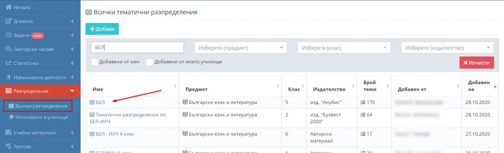 1. Навигирайте до модул "Разпределения" и изберете "Всички разпределения".