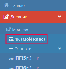 1.Навигирайте до модул "Дневник" и изберете съответния клас.