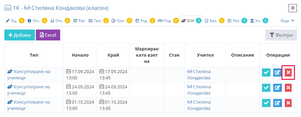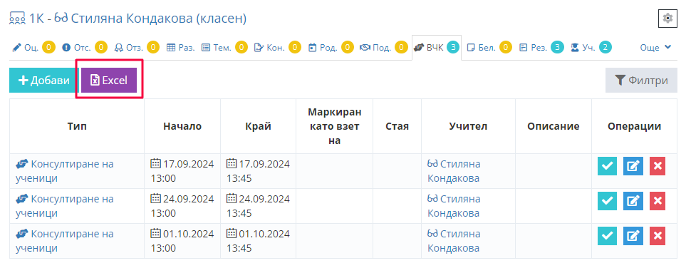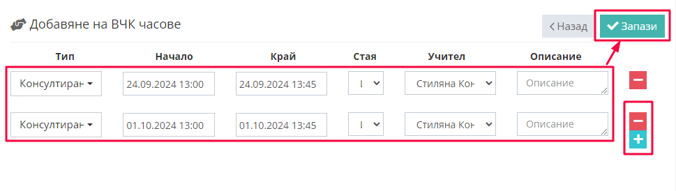 3. Попълваме данните за часовете
