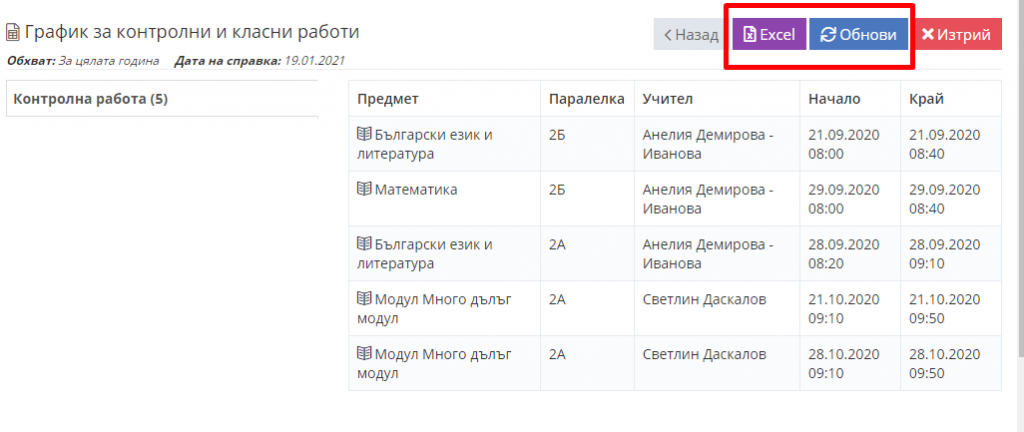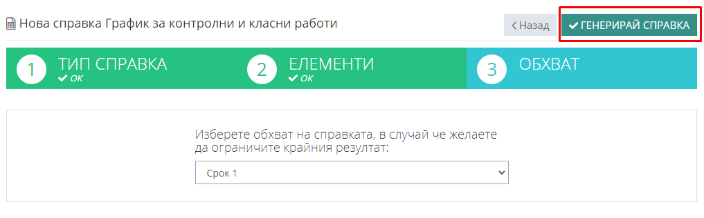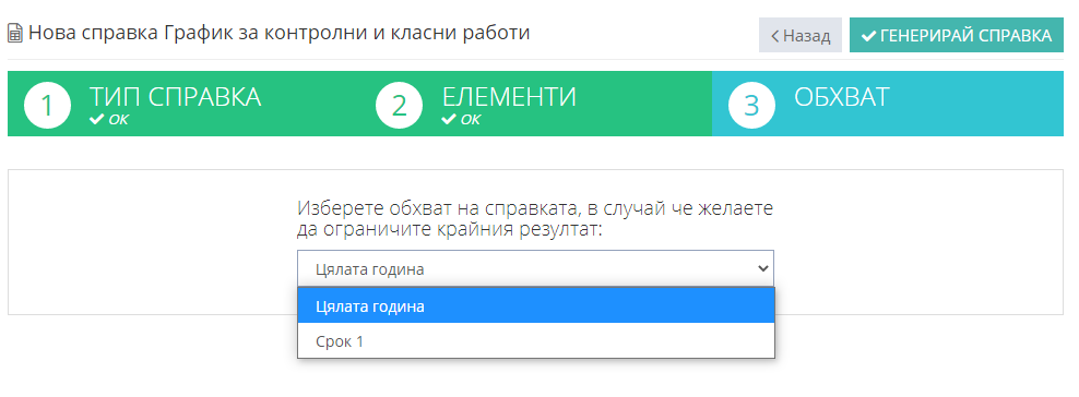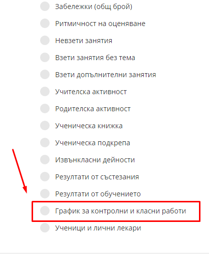 3. Избираме справка "График за контролни и класни работи".