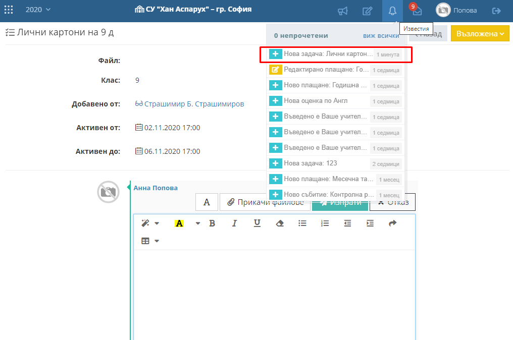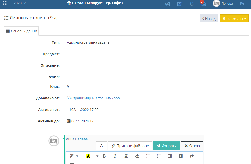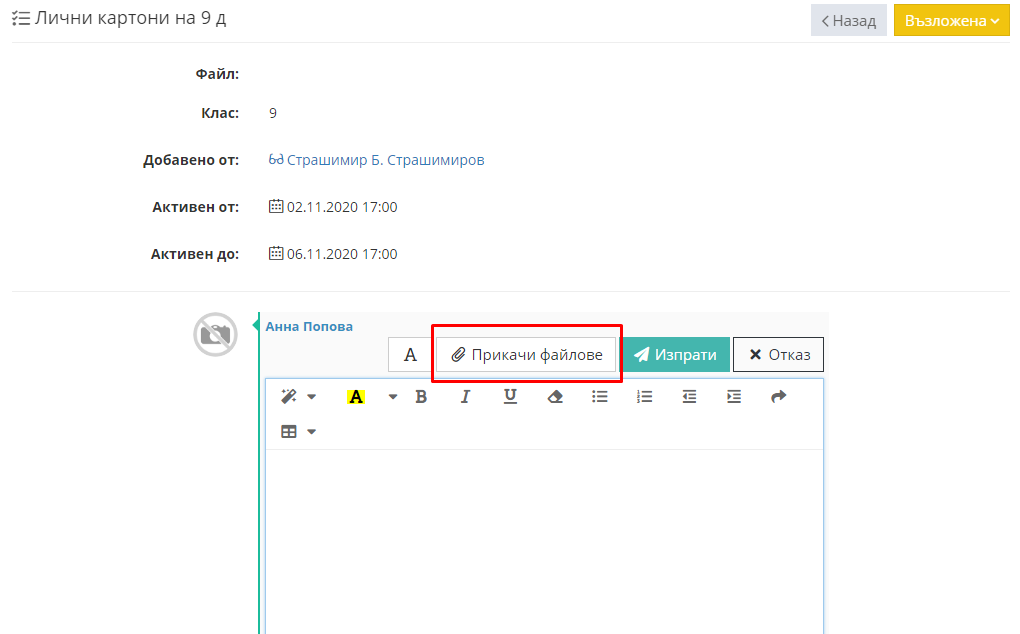 3. Кликнете на бутон "Изпрати" след като изпълните поставената Ви задача.