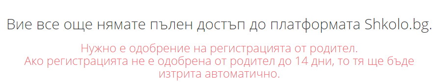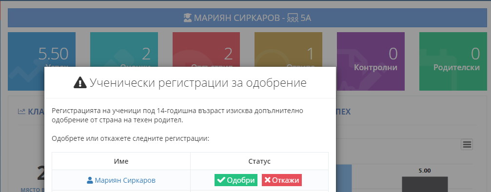 За да може ученикът да получи пълен достъп до профила си, вие като родител е необходимо да одобрите регистрацията.