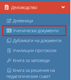 1. Навигирайте до модул "Деловодство" изберете "Ученически документи".