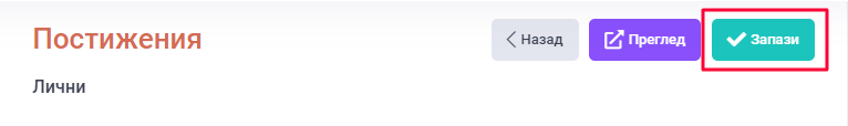 5. След като всички задължителни полета са попълнени и сме запазили, в навигационното меню ще се смени цвета на "Постижения" в зелено.