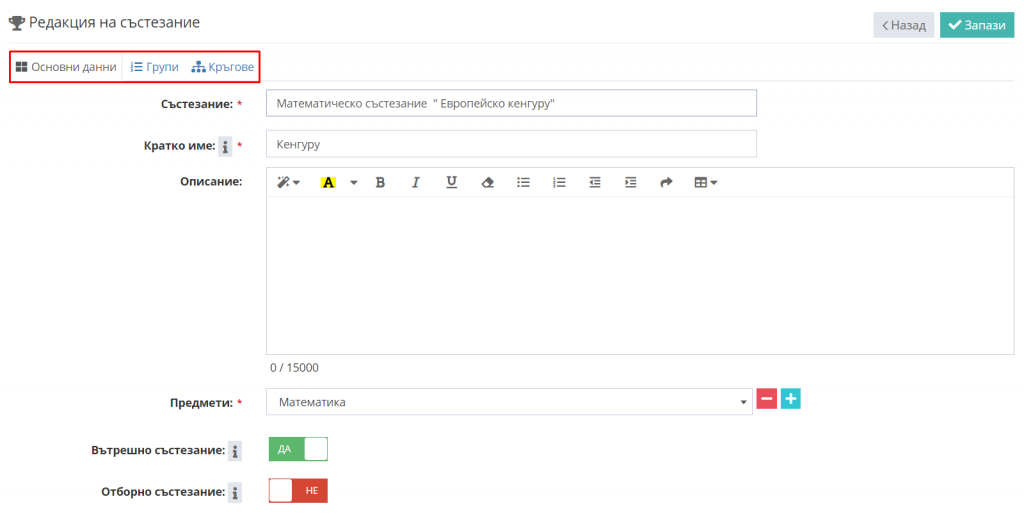2. Изберете състезанието, което искате да редактирате и кликнете на бутон "Редактирай".