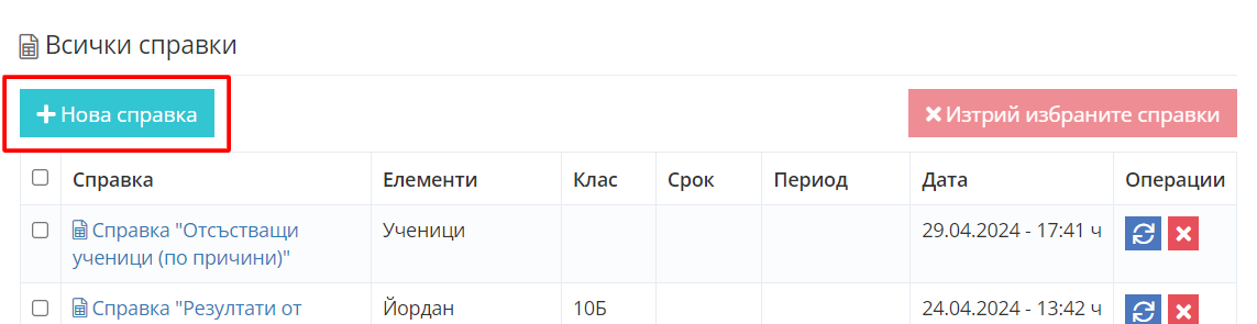 2. Кликнете върху бутон "Нова справка"