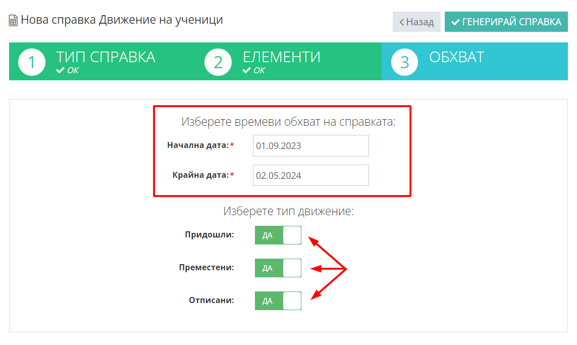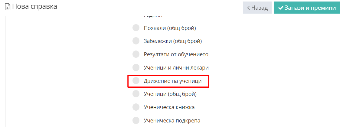 3. Изберете справка "Движение на ученици"