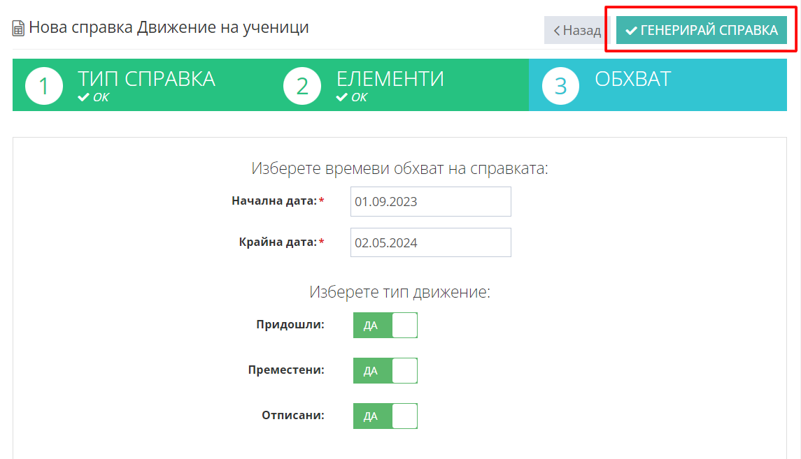 5. Кликнете на бутон "Генерирай справка".