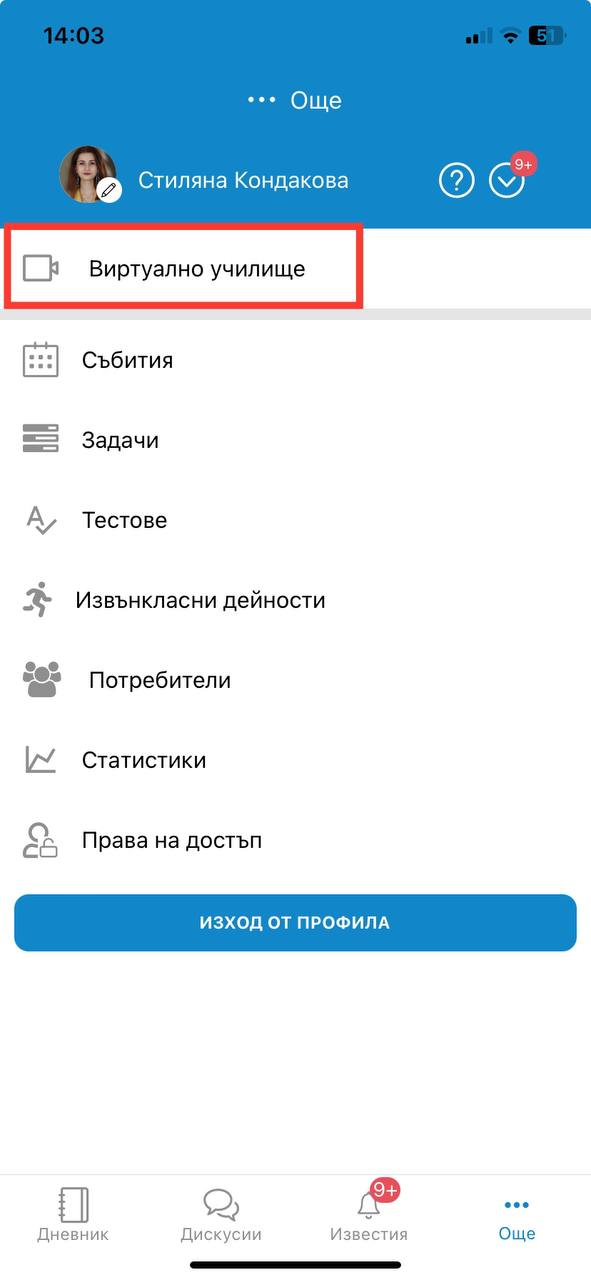 2. Изберете "Виртуално училище".