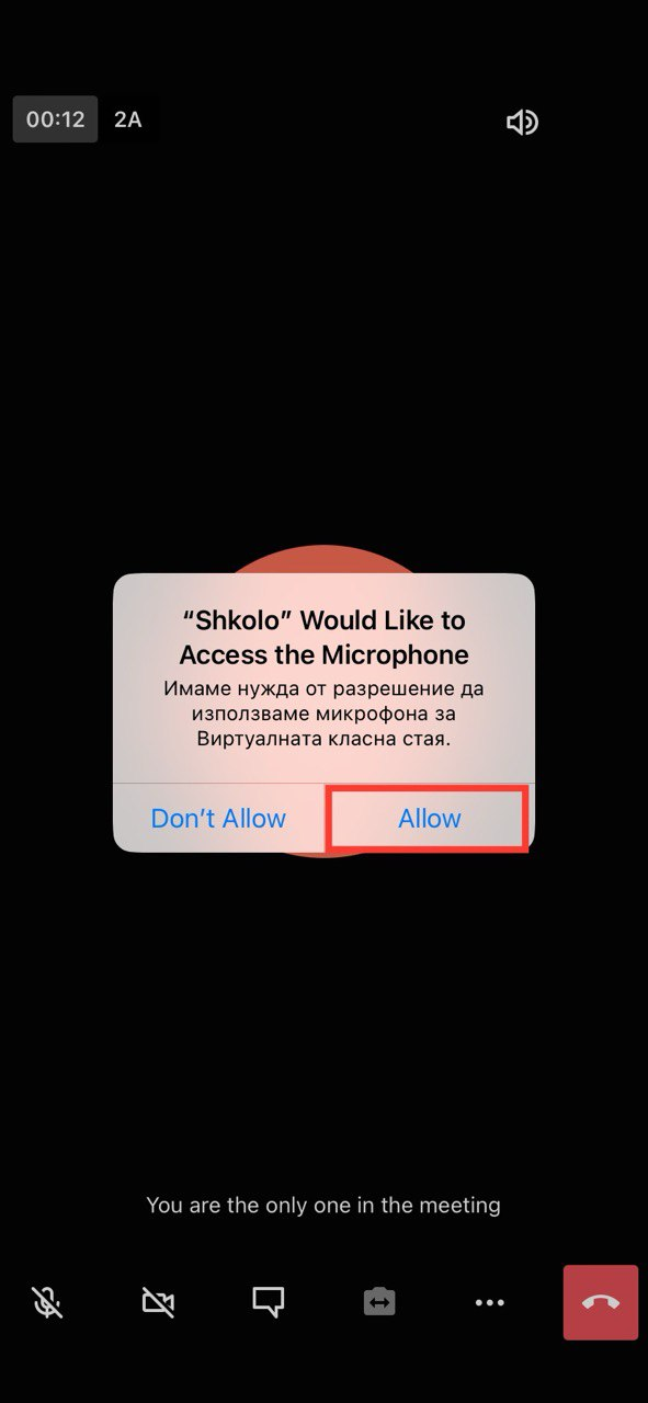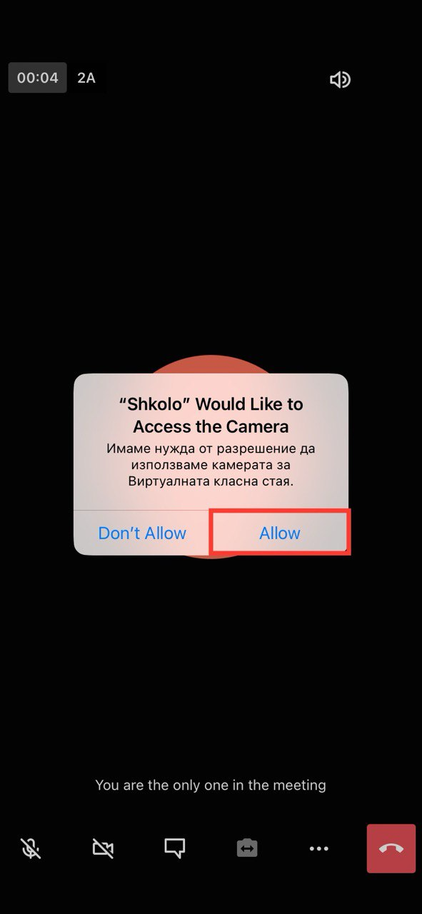 4. Разрешете използването на камера и микрофон, като кликанете на "Allow".