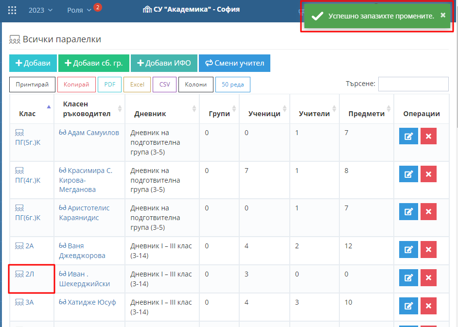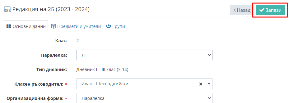 2. Натиснете бутон "Редактирай" срещу името на паралелката.