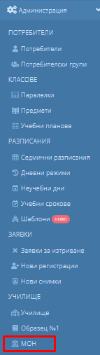1. Навигирайте до модул "Администрация" и кликнете на "МОН".