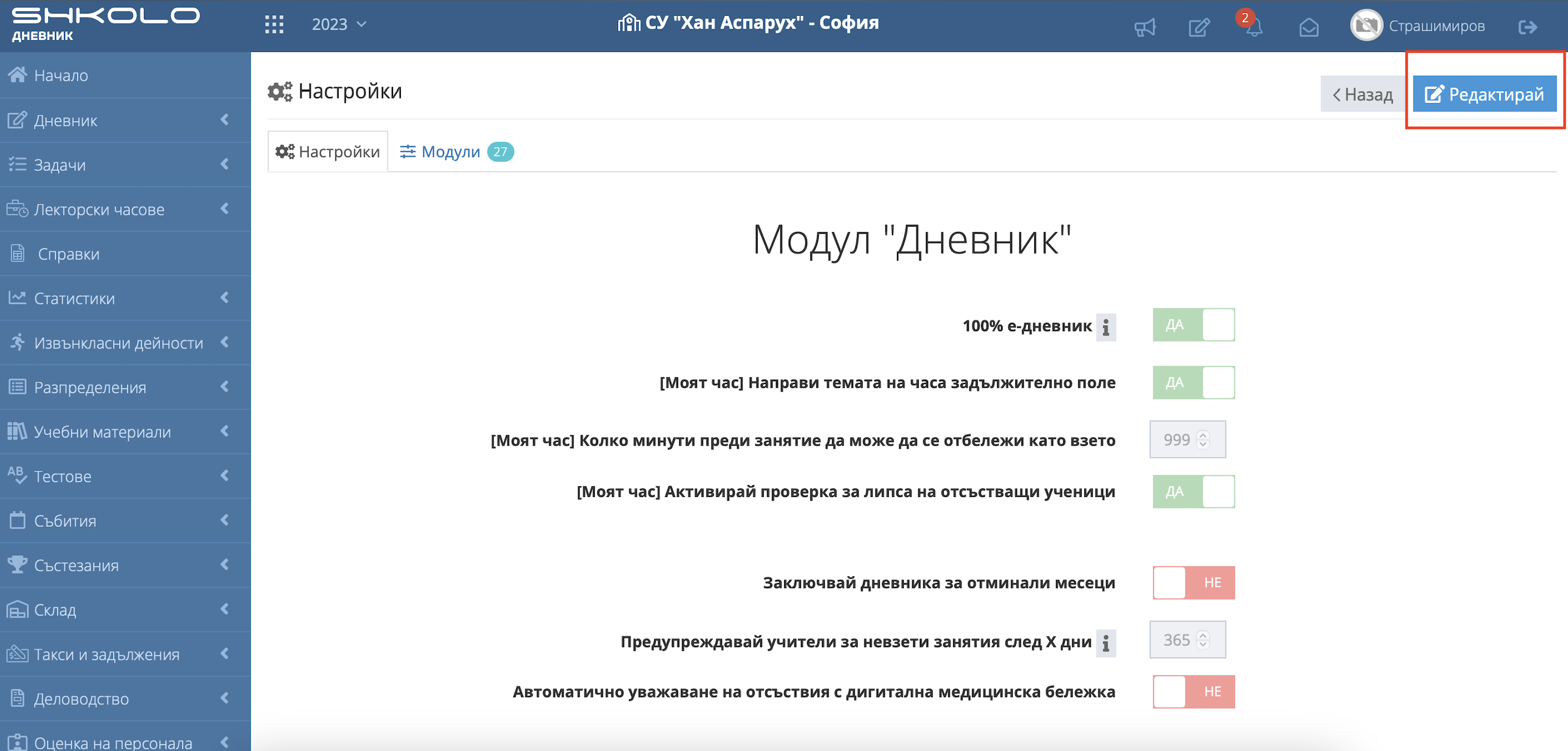 Ако желаете автоматично при постъпване на данни всички неуважени отсъствия да се уважават по медицински причини, както и всички нови неизвинени да стават уважени, следвайте тези стъпки.