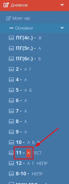 1. Навигирайте до модул "Дневник" и изберете съответния клас, в който искате да въведете поправителни изпити.