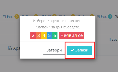 2. Кликнете на секция "Резултати" (Рез.).
