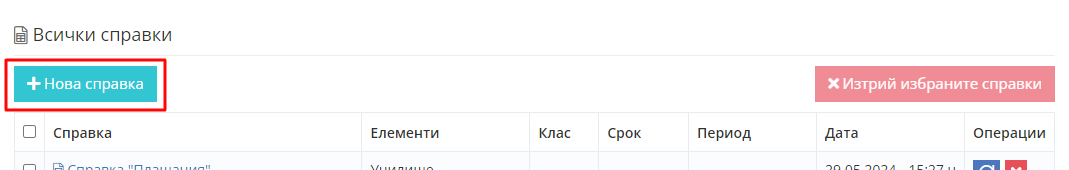 2. Кликнете бутон “Нова справка”.